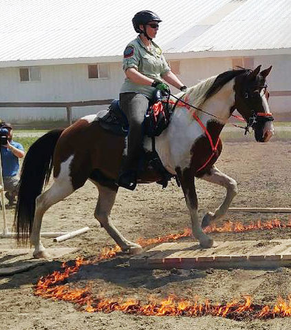 Equine Air Scent Detection, Equine First Aid, Large Animal Rescue, Helicopter Training, Cadaver Training, Crime Scene Preservation, etc. We train together about once a month but each member is required to submit documentation for a certain number of independent trainings per year. Also, most of our horses have another "job", which often includes parades, "trail riding" within urban city/town limits, long distance competition, and other disciplines that constantly reinforce the traits necessary for a useful SAR horse.